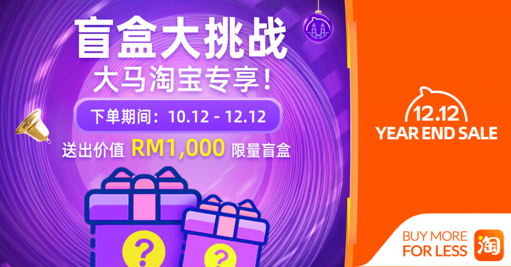 看了那么多淘宝年终盛典购物津贴,相信能帮到大家“满载而归”!不要忘了花越多就能得到越多惊喜哦!还有只要你在12月10日至12日期间成为“满¥299大马包邮专区”购买额最高的用户将获得马来西亚淘宝送出价值RM1,000 的限量版盲盒!