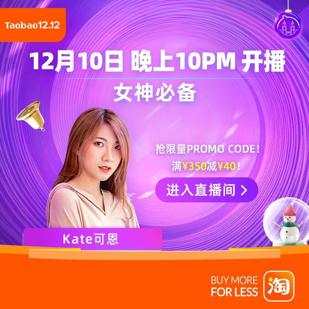 ▼今年大马淘宝双十二还新增了KOL 直播带货专场让大家可以更进一步了解要买的产品!除了看淘宝直播抢好货,你还有机会在直播抢到限量的PROMO CODE!所以记得准时进手淘看哦!