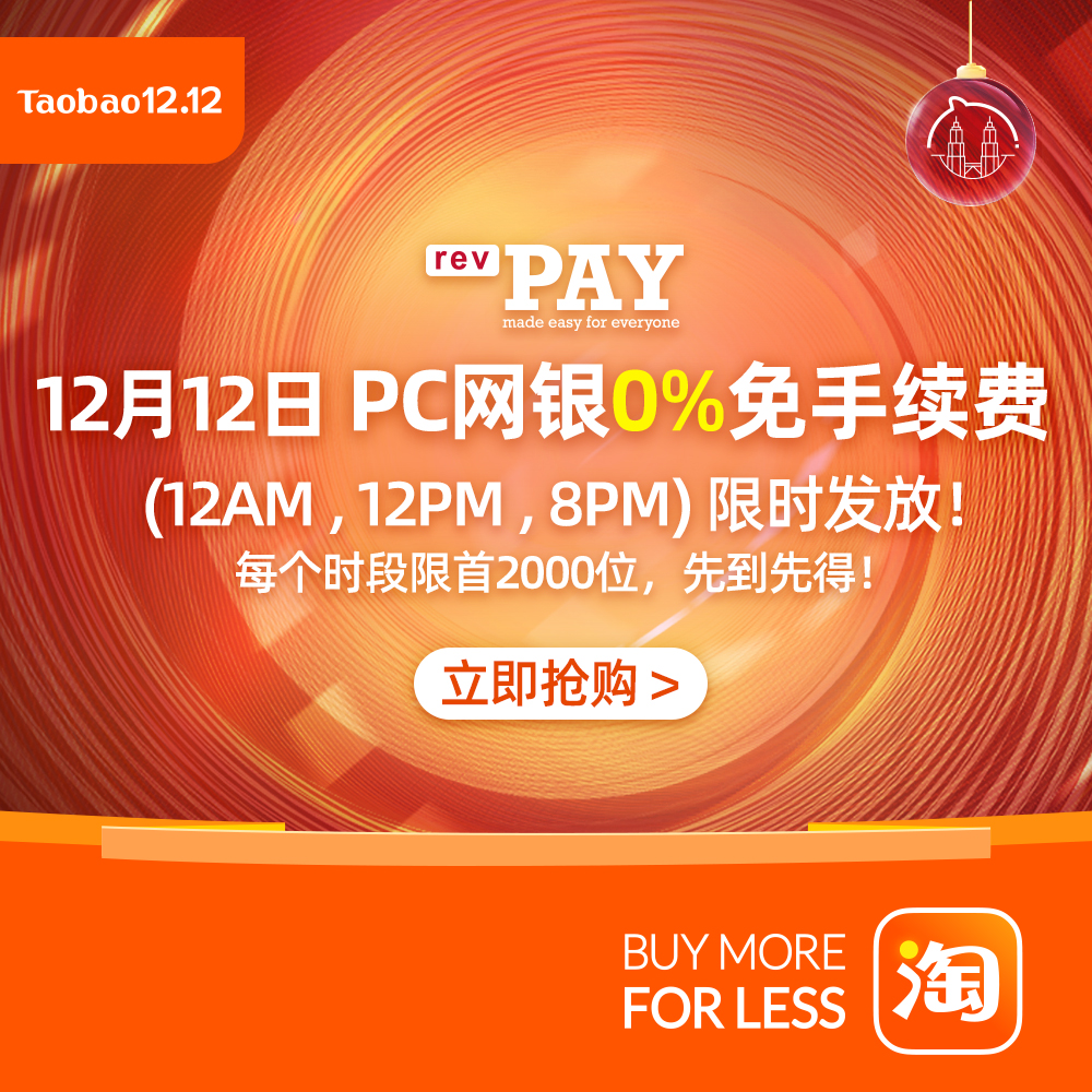 如果你喜欢用电脑来下单,这次双十二也有PC 网银下单免手续费的优惠!不过每个时间段(12AM,12PM,8PM)只限首2000位下单的用户!先到先得所以手脚要快哦!