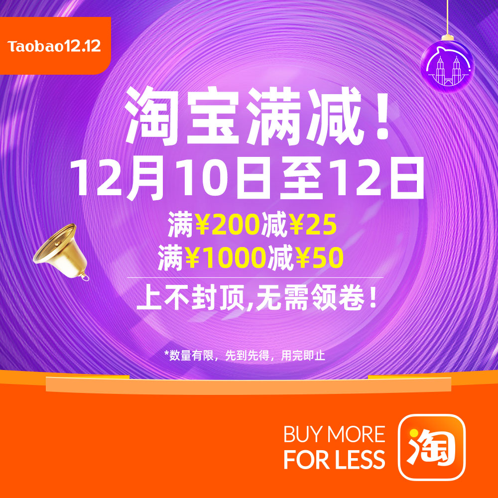 与此同时,淘宝双十二 “跨店满减”也将一同上线,支持跨店每满¥200 减¥25; 或每满¥1000 减¥50,同样的上不封顶也无需领卷!