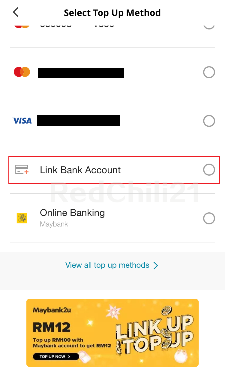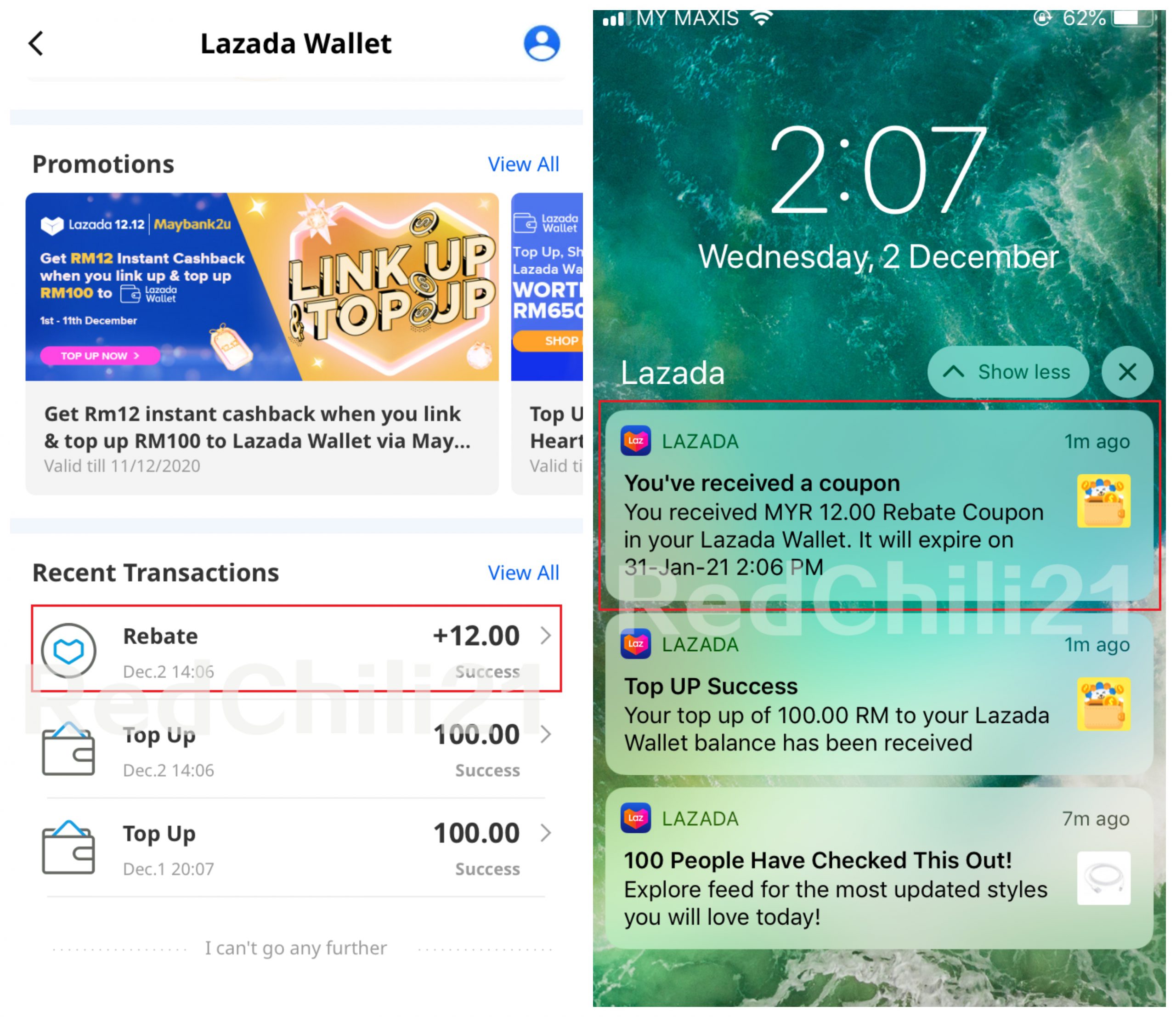 不过,需要注意的是你必须使用Maybank 来绑定Lazada 的电子钱包,并且充值RM100才可直接获得RM12 的现金回扣!