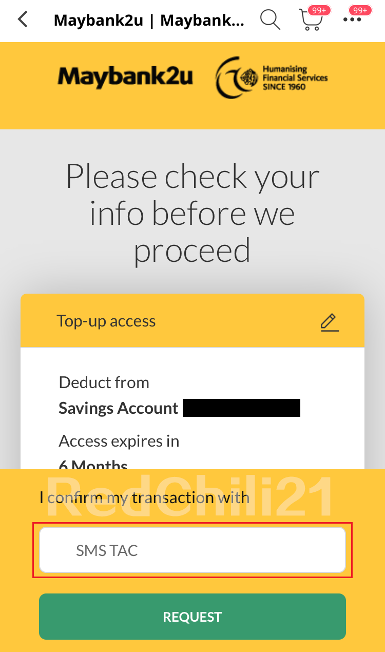 ▼ 步骤6:此时,你会接收到信息,并且输入有关SMS TAC 密码!