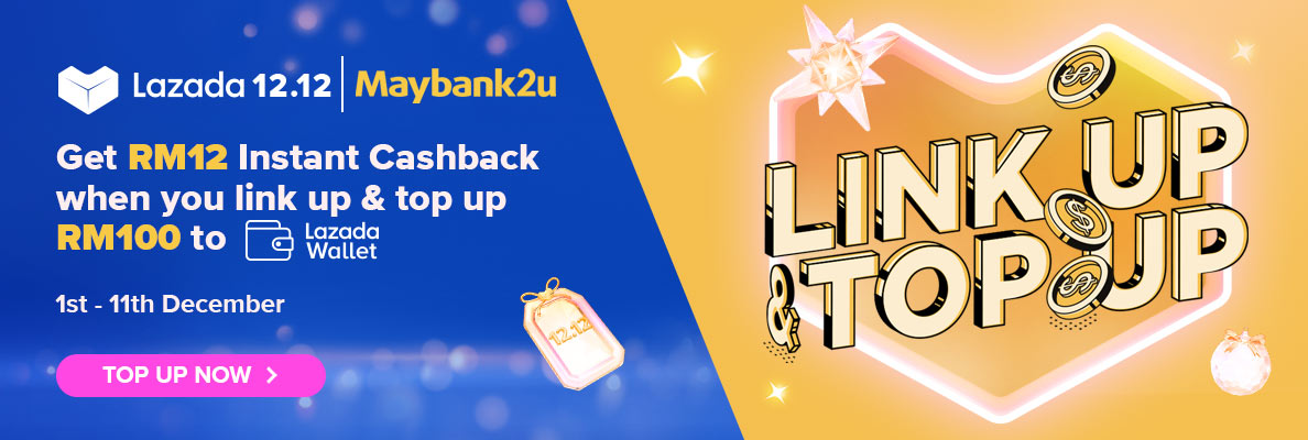 大马著名网购平台Lazada 从即日起至12月11日推出「12.12 充值」(Link Up &Top Up )优惠活动!只要你在这期间充值RM100,可直接获得RM12 现金回扣!