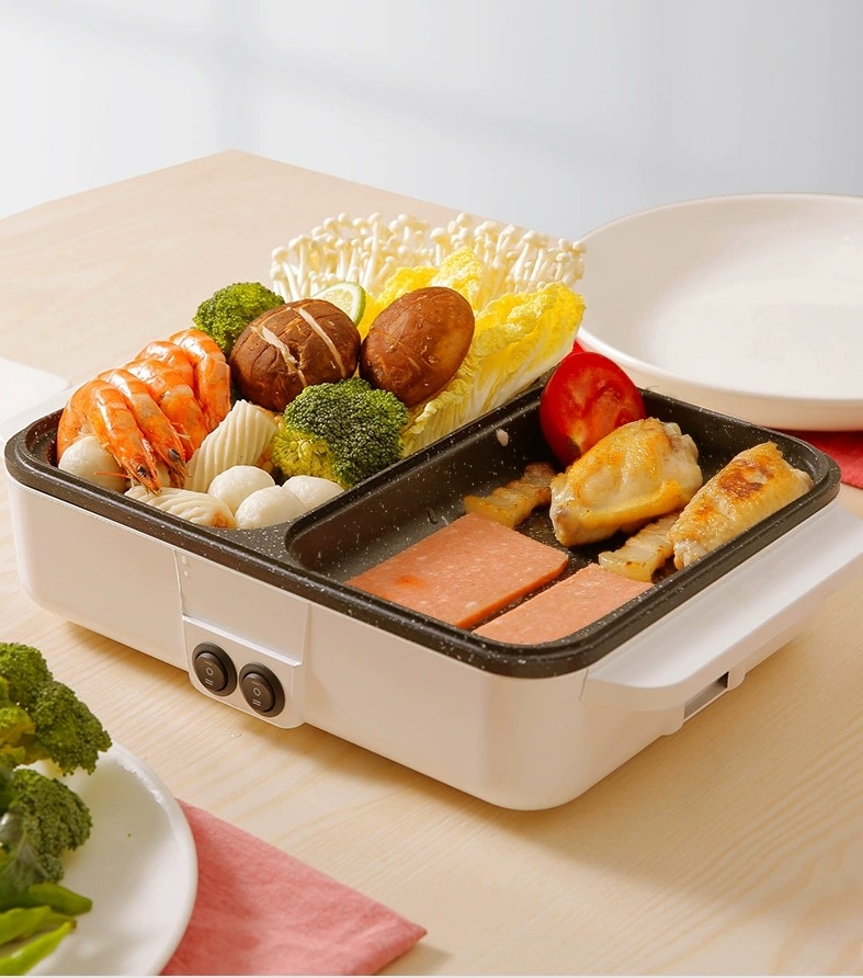 这款2合1方形烧烤盘和火锅,带有2个温度控制器,可调节烧烤和火锅的温度!适合多人2至10人的份量!适合家人或朋友一起烧烤吃火锅啦!而且颜值也非常高哦!