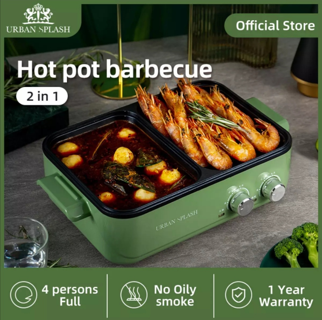 5)URBAN SPLASH [From UK] Household Smokeless Non-stick Pan Electric BBQ Hot Pot Separate Electric Grill Multi-Function Cooking Pot Barbecue Pot —— 售价RM88