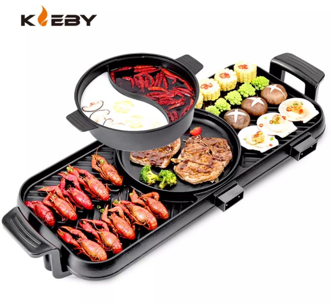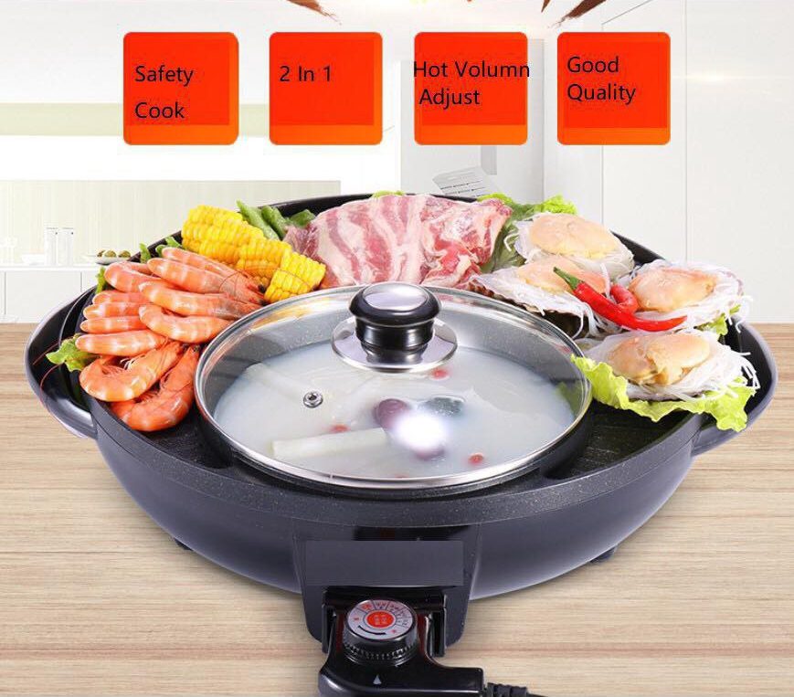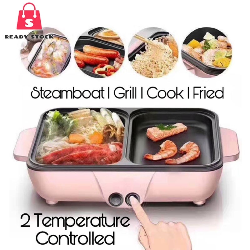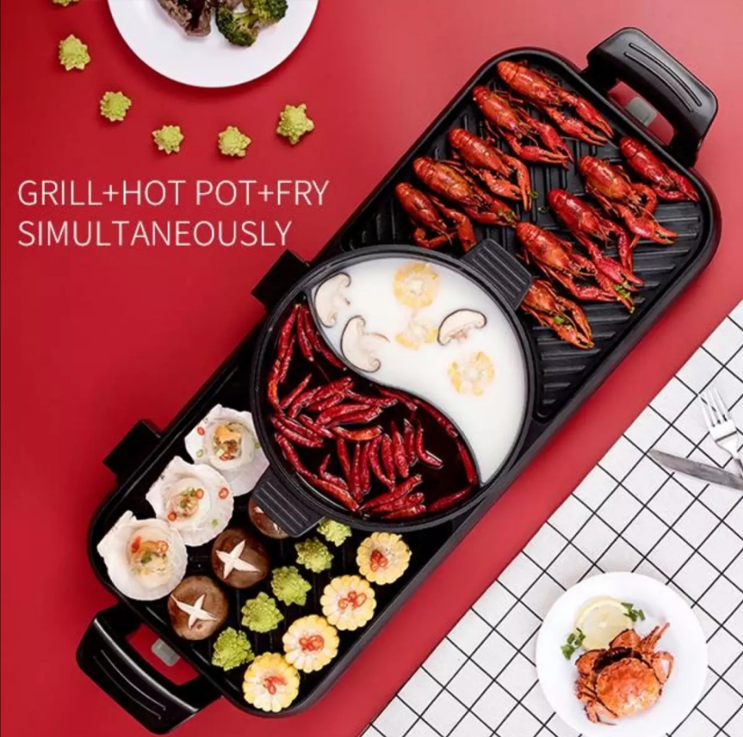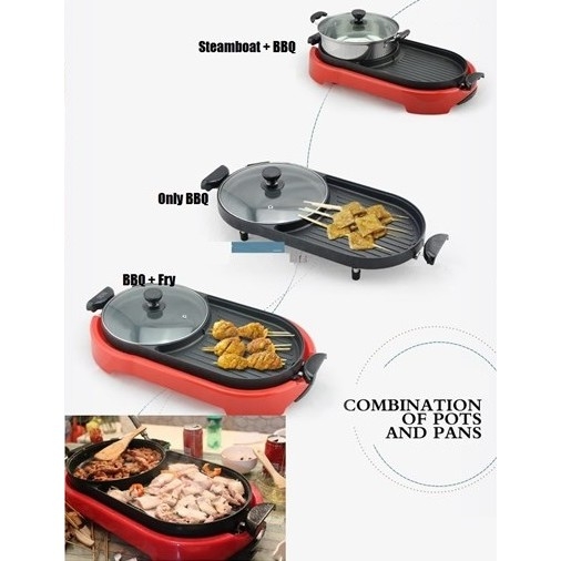 3)2 IN 1 Electric BBQ Grill Pan Teppanyaki Hot Pot Steamboat Cooker 2 Temperature Control / Stimbot —— 售价RM39.90