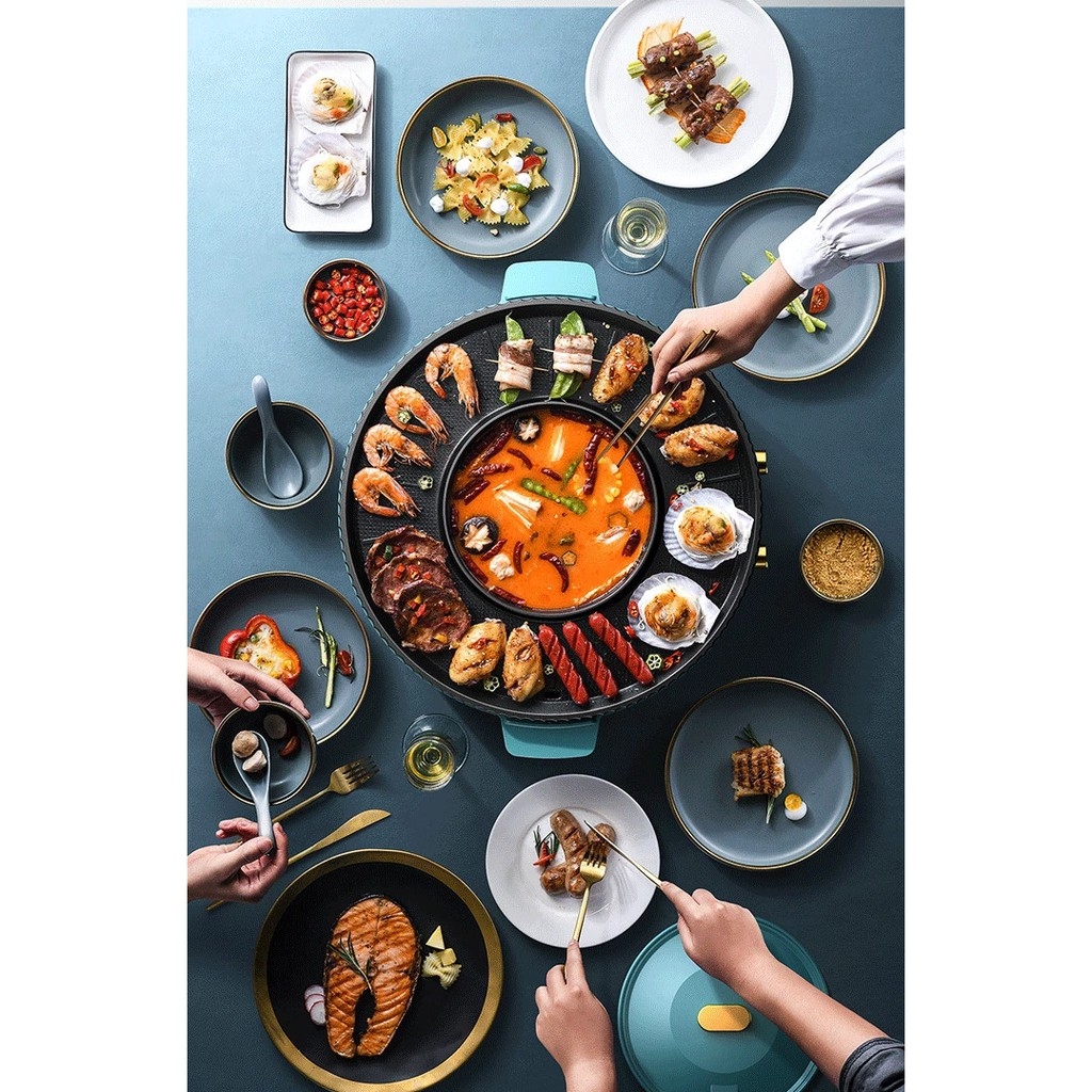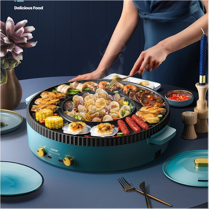 看了以上2合1的烧烤火锅,现在来看看3合1烧烤火锅!这款可烧烤,火锅和煎炸的功能,适合多人一家人或朋友聚会一起使用!