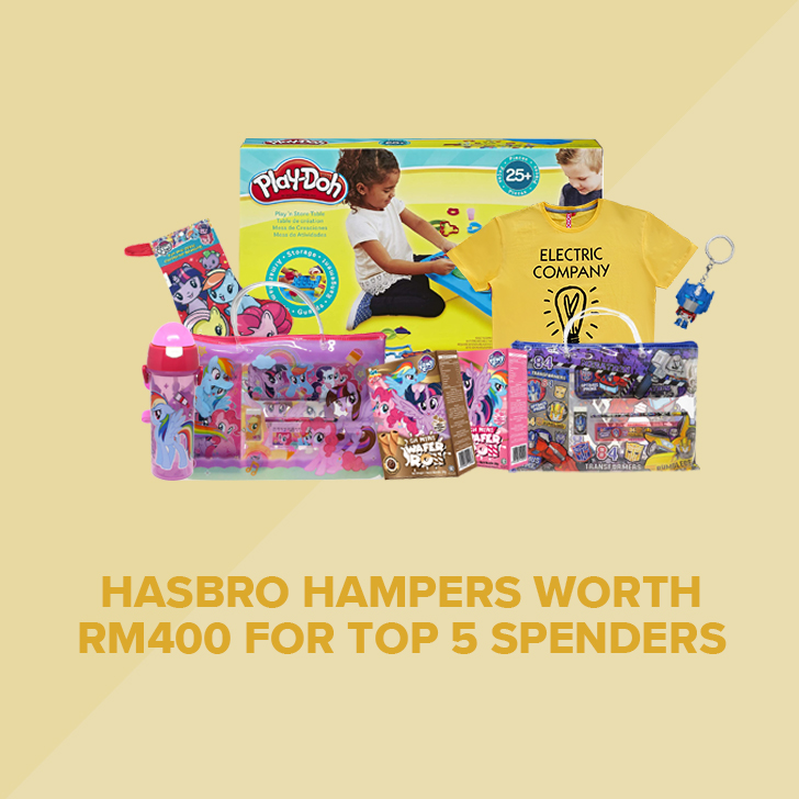 ▼ 一起来看看这次Hasbro 带给大家哪些惊人的促销优惠!活动期间下单最高额的5位用户将获得Hasbro 送出价值RM400 的礼蓝!