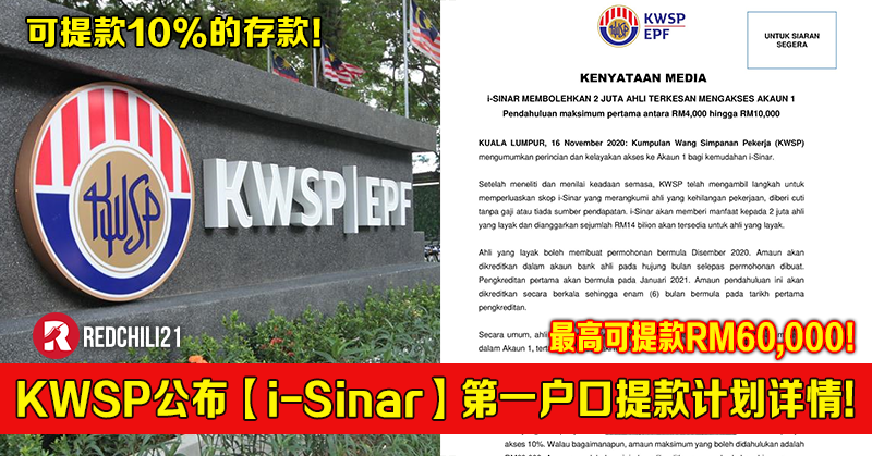 继上个月KWSP 公布【i-Sinar】公积金第一户口提款的详情!如今该项计划将可在12月21日起开放申请!