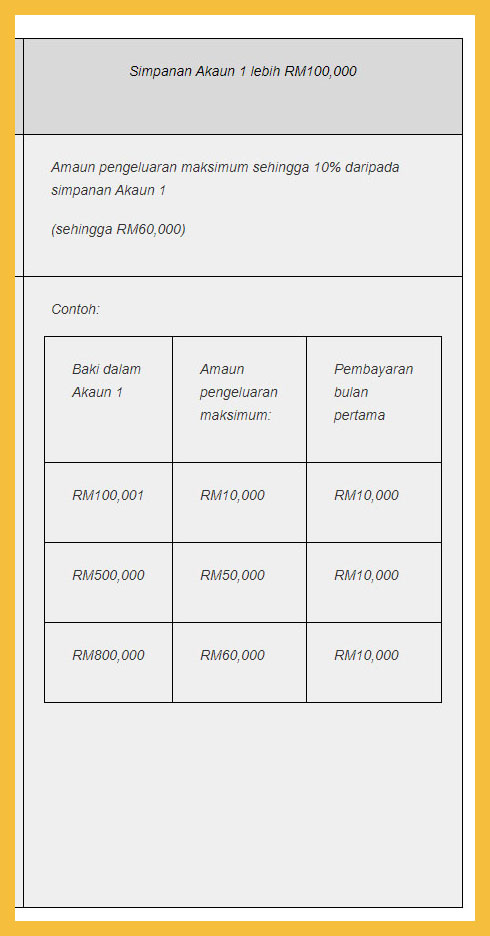 - 第一户口存款RM500,000,会员可提领RM50,000