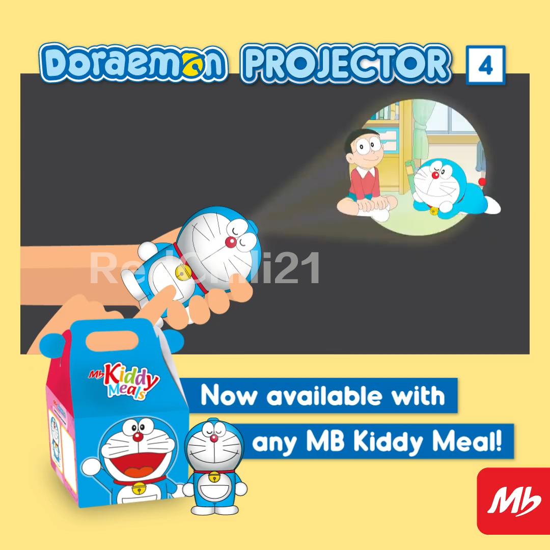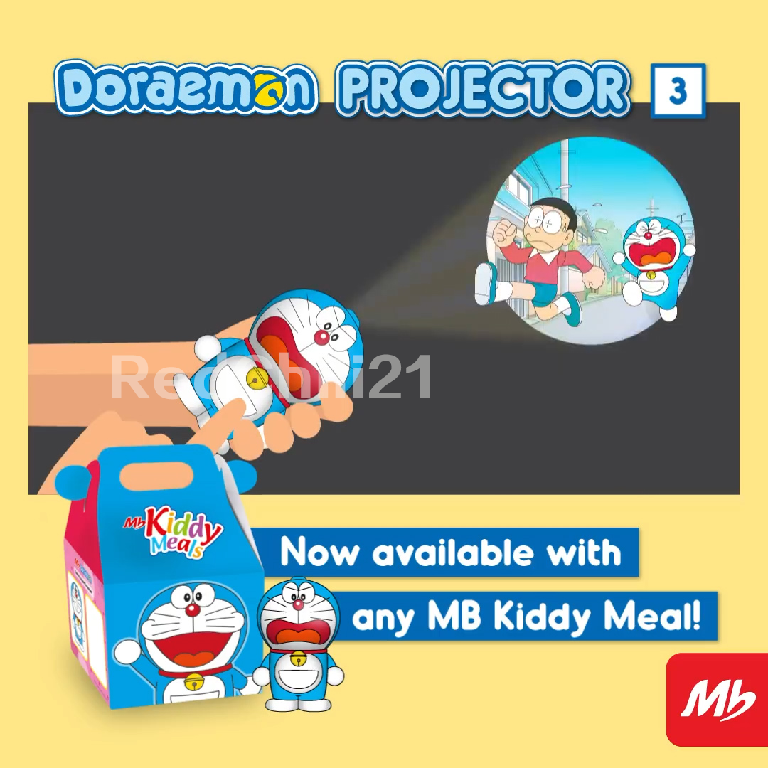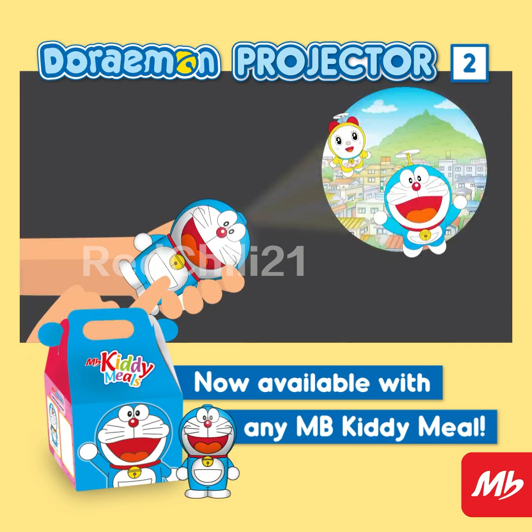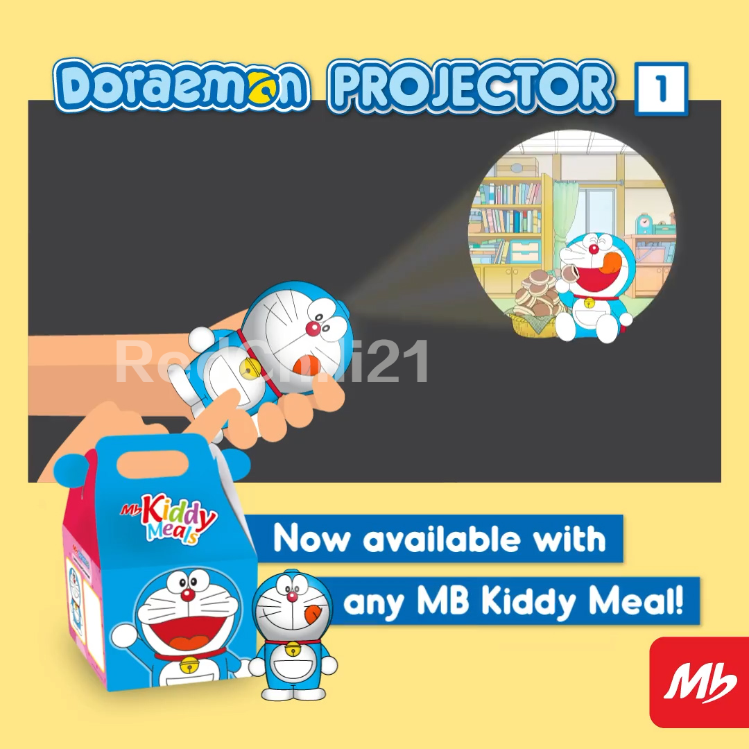 从即日起,只要你购买Marrybrown 儿童套餐(Kiddy Meal)就可免费获得一个Doraemon 模型投影仪,共有4种款式!