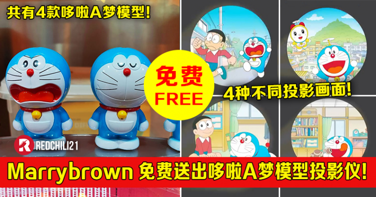 Doraemon粉丝,又是时候收集新商品啦!大马著名快餐店Marrybrown 免费送出4款Doraemon 模型投影仪!