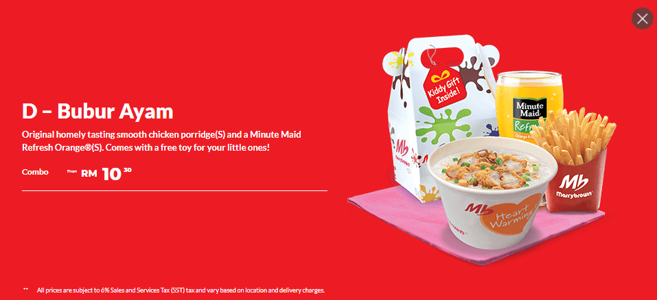 套餐包括:1碗鸡粥 + 1份薯条 + 1杯Minute Mate柳橙汁(S)+免费一个Kiddy Gift