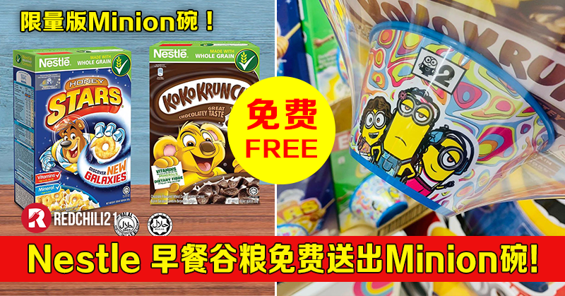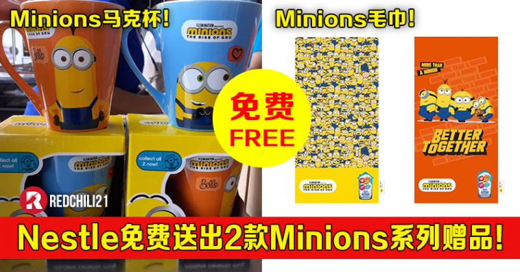 如今你只需购买Nestlé 指定商品,就可免费获得指定Minions 系列赠品,如:Minion 马克杯、毛巾、保冷袋的赠品!