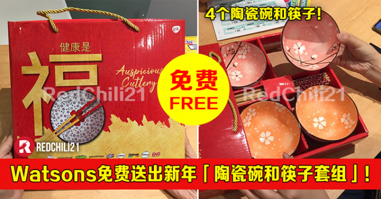 只要你在Watsons 购买指定品牌的产品,就可免费获得新年系列的陶瓷碗和筷子套组!