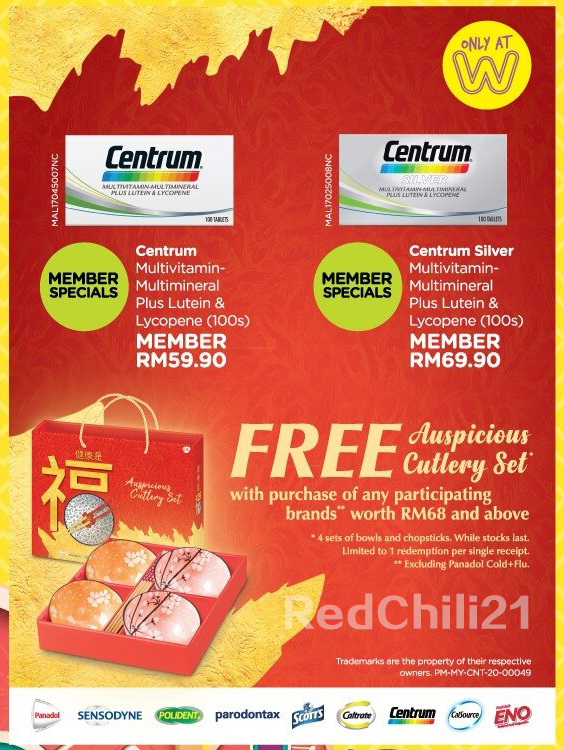 - 指定商品:Centrum、Panadol、Sensodyne、Polident、Parodontax、Scorr’s、Caltrate、Centrum、Calsourse 及ENO