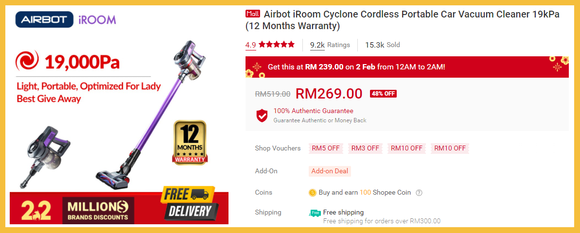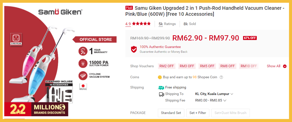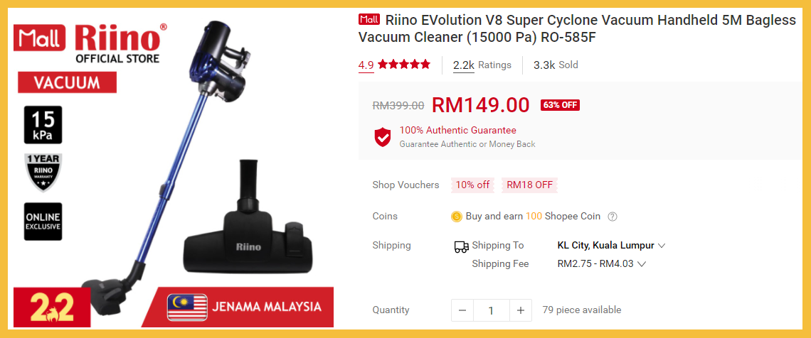 看看哪个品牌的吸尘器是你想买已久,但却还未入手的!可趁Shopee 【新春2.2】大促销购买啦!