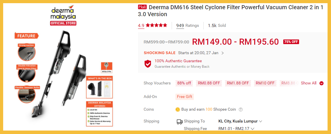 如今各大品牌的吸尘机都可在Shopee 网购平台买得到,而且还推出新春大促销!高达80%折扣!我们一起来看看吧!