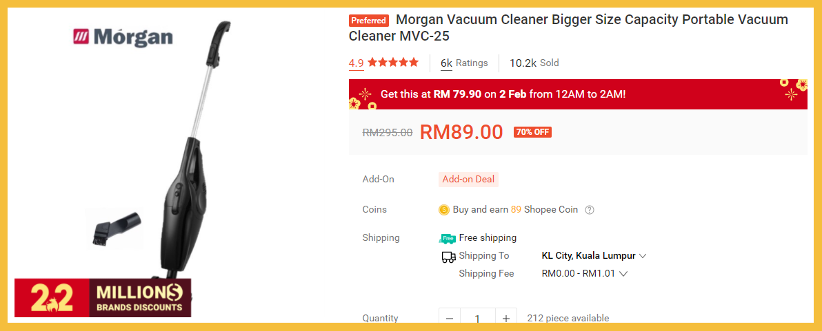 ▪ Morgan Vacuum Cleaner Bigger Size Capacity Portable Vacuum Cleaner MVC-25 – RM295 RM79.90【点击这里】