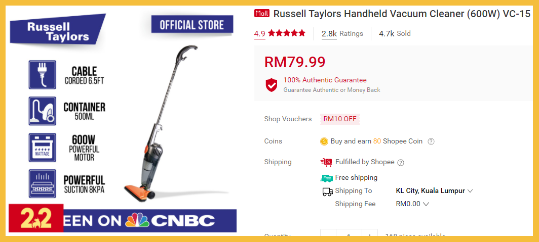 ▪ Russell Taylors Cordless Vacuum Cleaner VC-22 – RM199.99【点击这里】