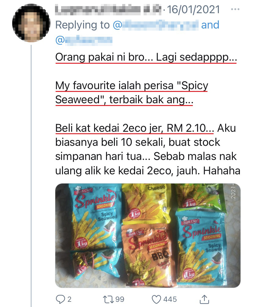 ▼ 除了峇峇辣椒粉,网友们还大力推荐这款调味料,据说更好吃!