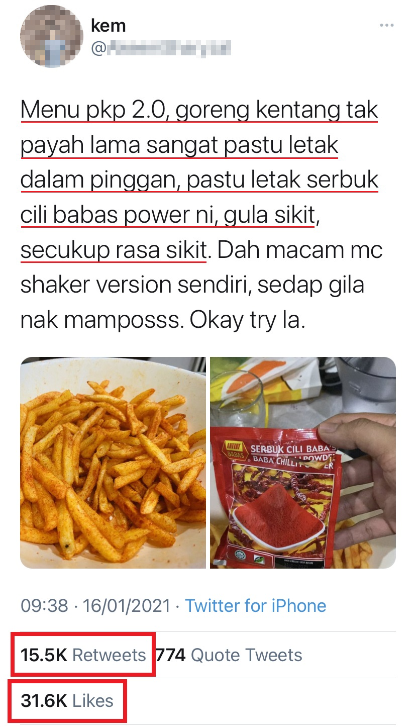 日前一名大马网友就在 Twitter 发文教大家如何自制同款 McShaker 薯条,该食谱迅速引起疯传,许多网民尝试以后都赞不绝口!