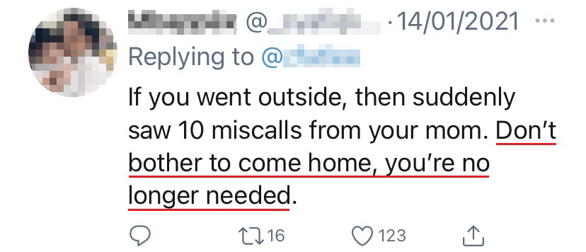 ▼「出门以后发现有10通来自妈妈的未接电话……」