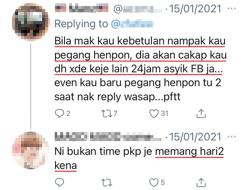 ▼「明明才拿起手机要回复信息,被妈妈看见了就会被说:整天只会滑手机,没有别的事情做!」