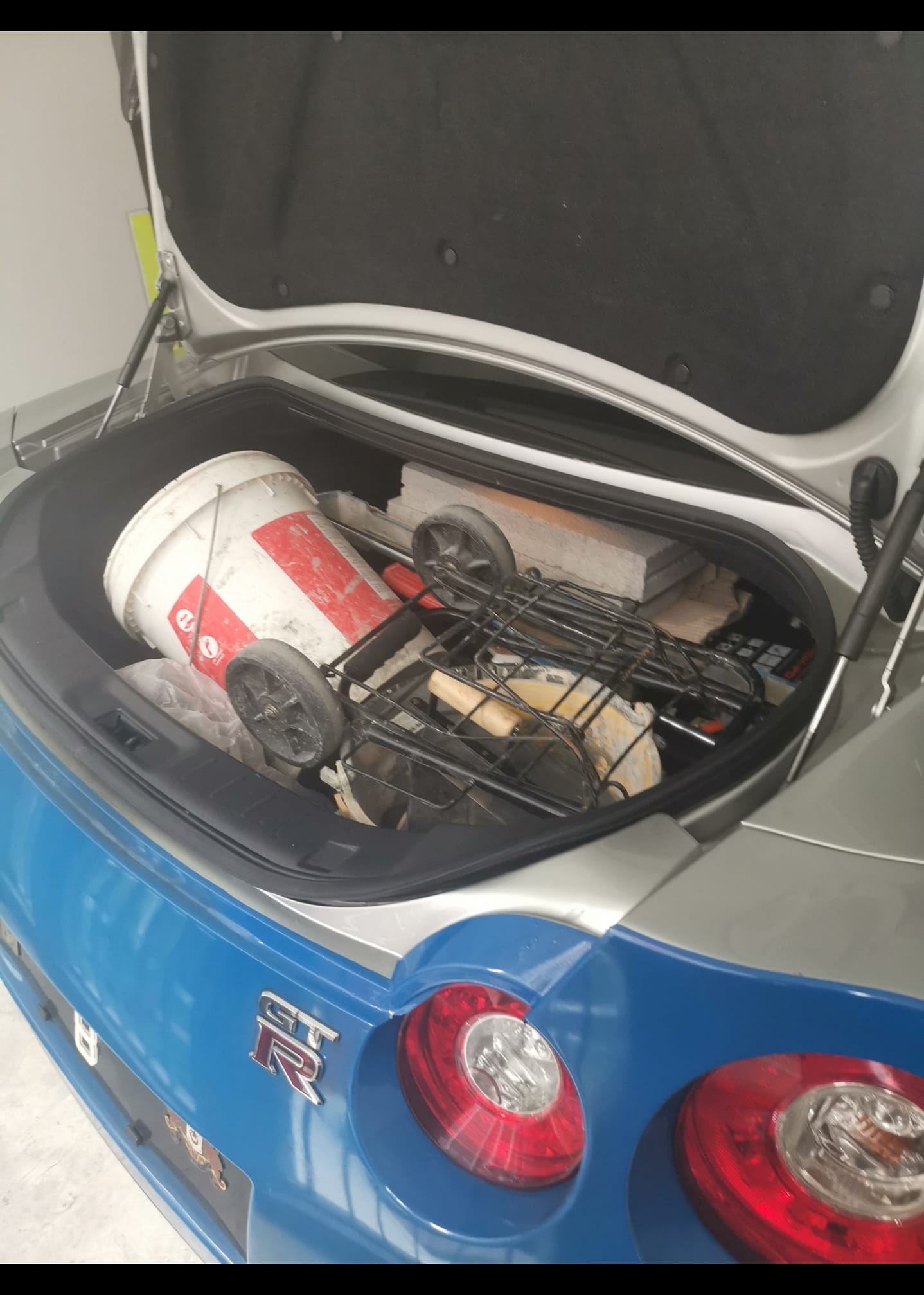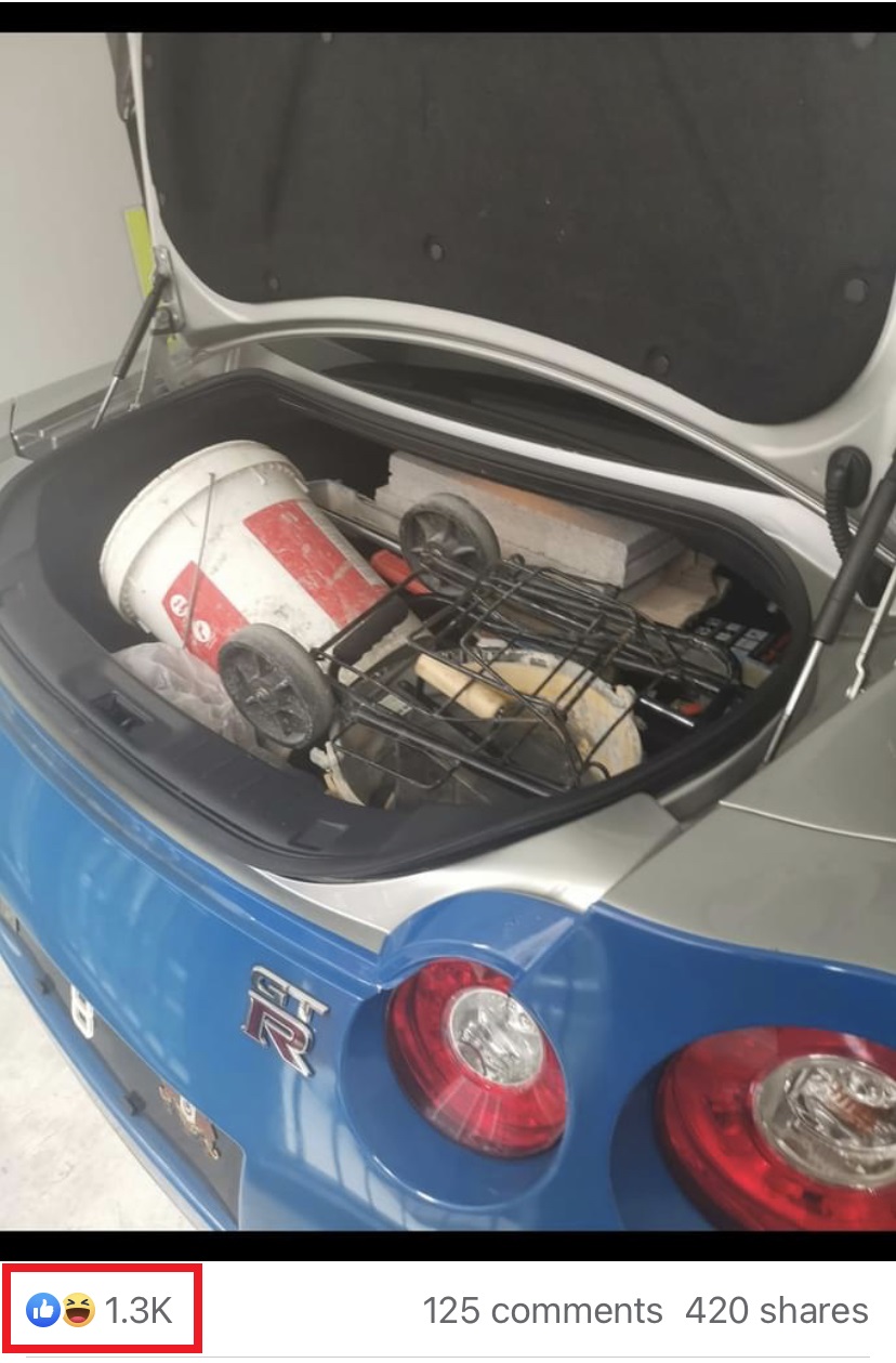 ▼ 照片中,后车厢装满装修工具的正是 Nissa GT-R,而且车牌只有一个“8”,可想而知这辆“装修车”的价格不菲!