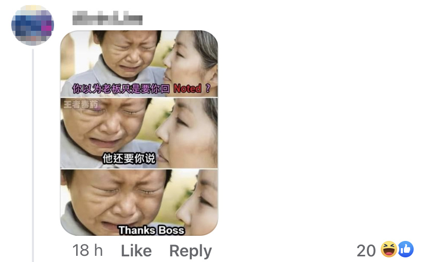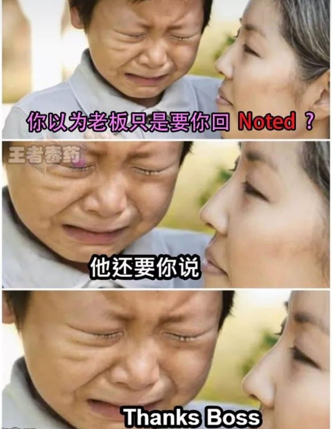 约两个小时以后,群组里的员工们才纷纷回复:「Noted. 」
