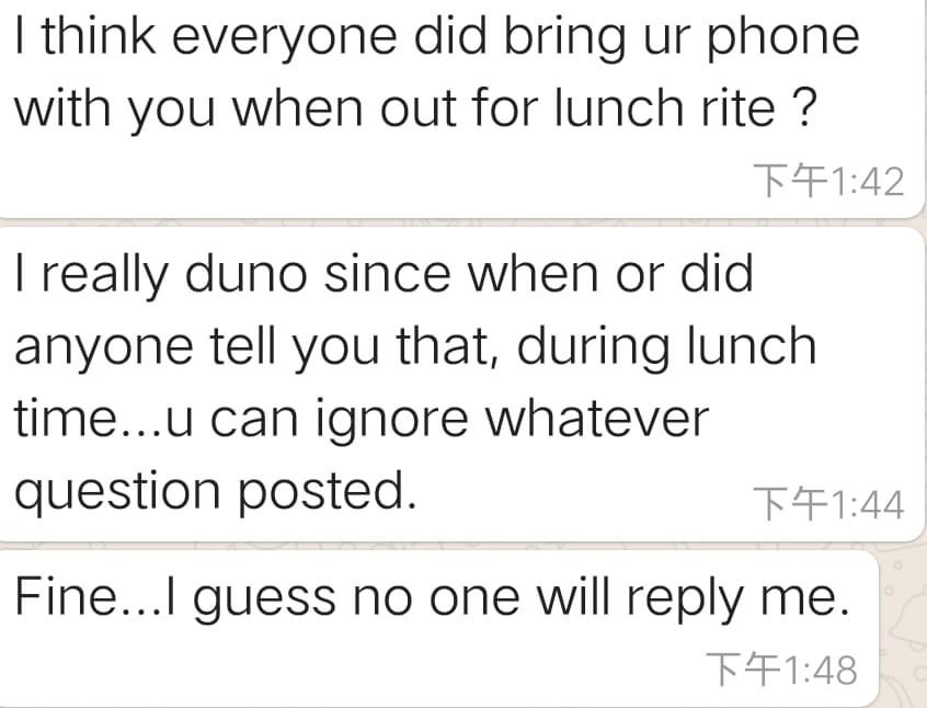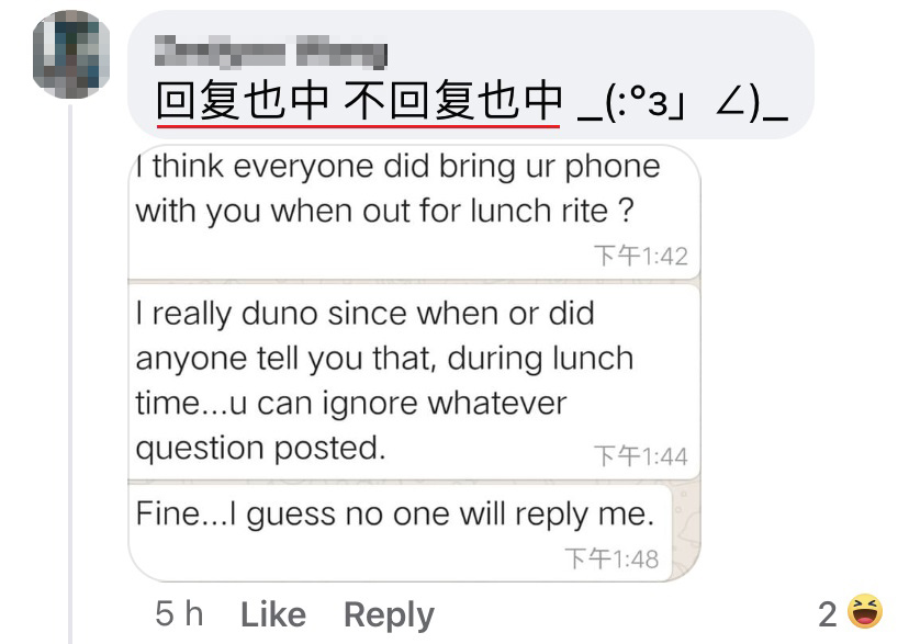 ▼ 老板在群组讲了一大串,最后:「好吧,我看是没有人会回复我的。」