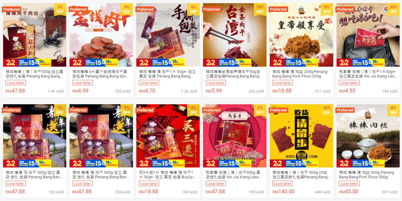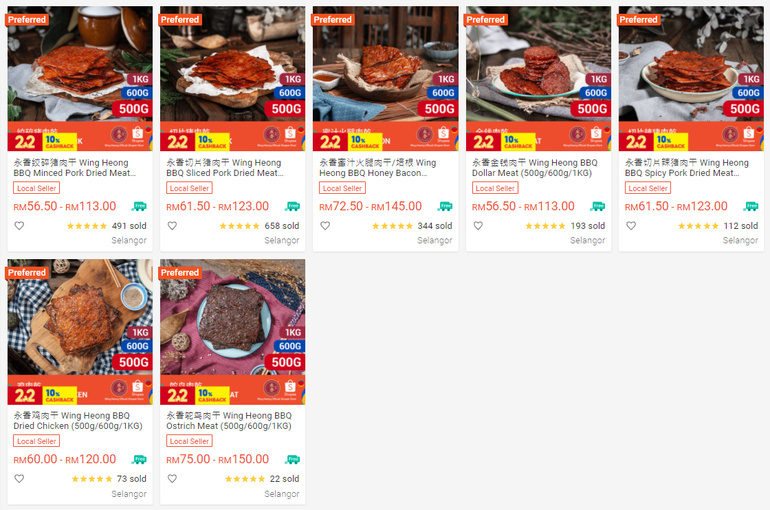 以下小编为大家整理出Shopee 15种品牌肉干店铺: