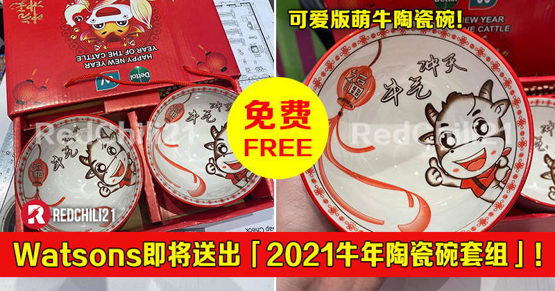 ① Watsons 免费送出2021牛年陶瓷碗套组