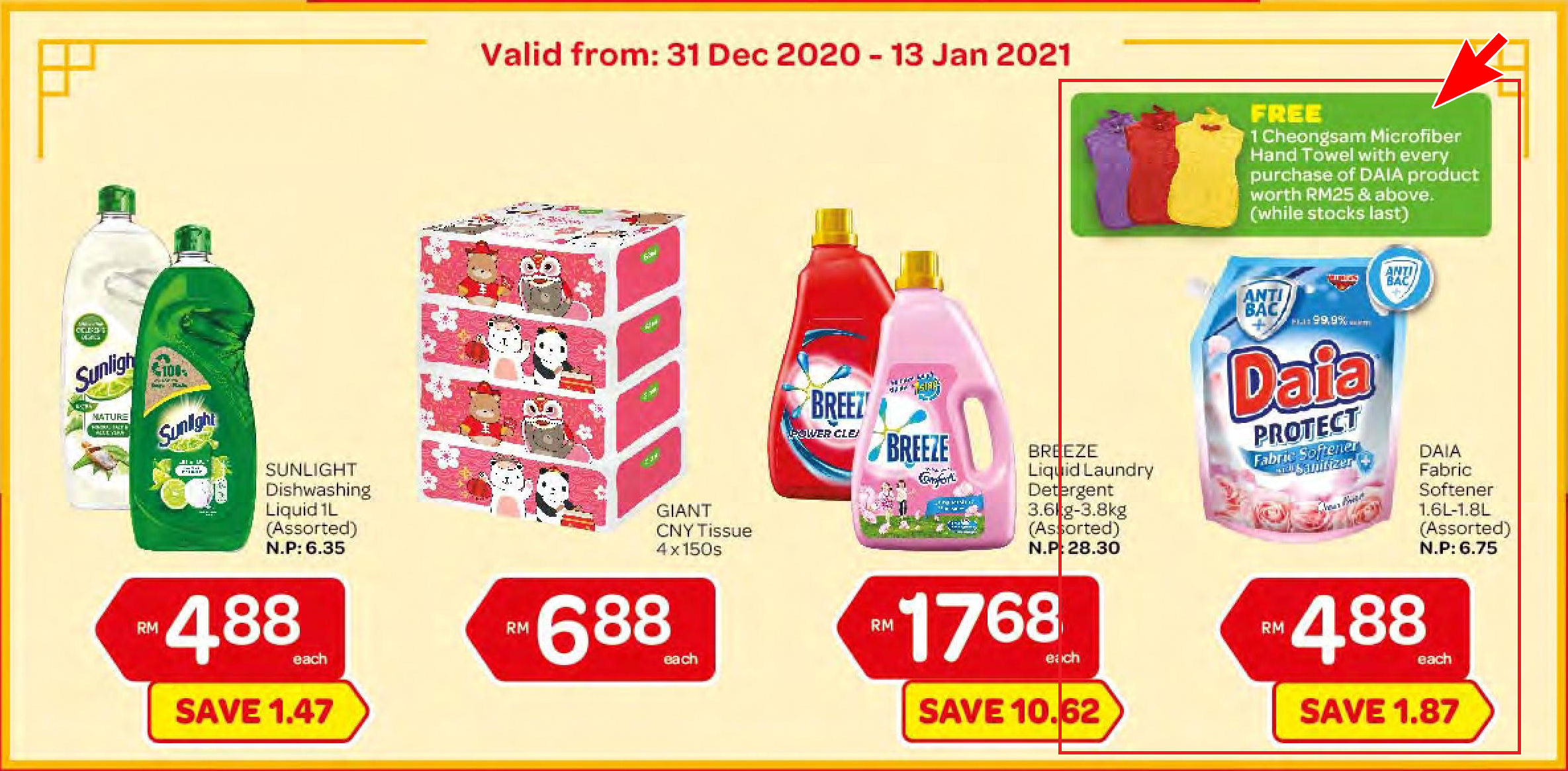 促销地点:马来西亚半岛的Giant 超级市场(除了Pasar Raya Besar Cheras)/ Billion