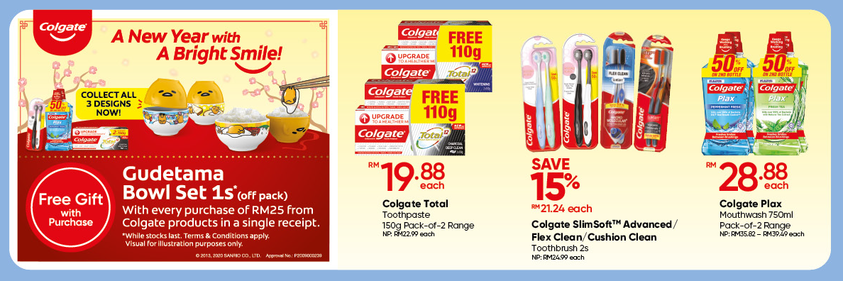 促销条件:只需购买RM25 或以上 的Colgate 品牌产品就能免费获得