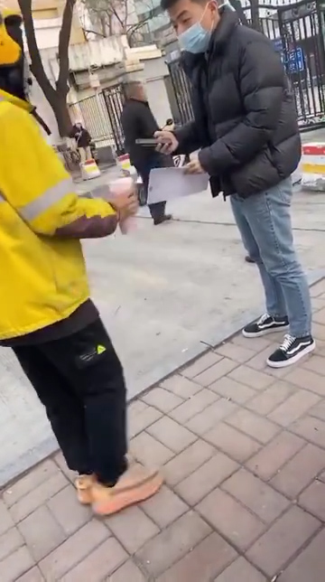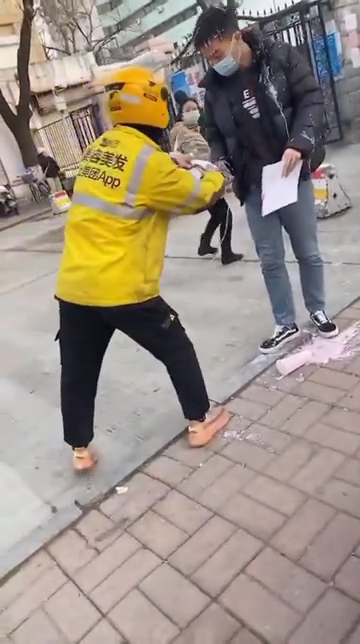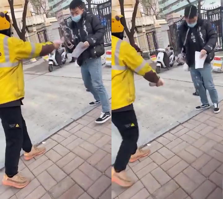 ▼ 或许是担心自己会挨揍,外卖员立刻拿出订单指给男子看,表示他只是照单行事,然后外卖员就快速跑走了。