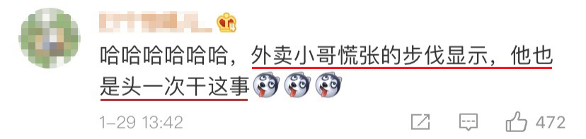 ▼ 看得出外卖小哥当时也慌了!