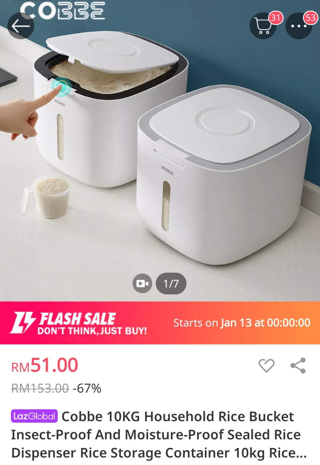 ⑮ 防潮储米箱 —— 价格只需RM51