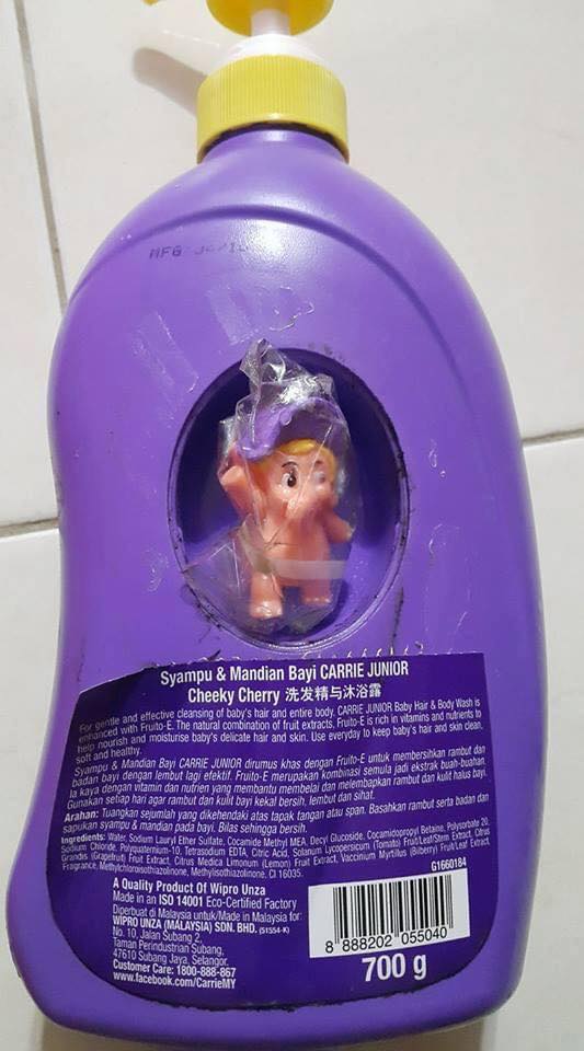 近日社交媒体上流传一项消息,Carrie Junior 沐浴露赠送的玩具其实是藏在这里,网民看了才恍然大悟!