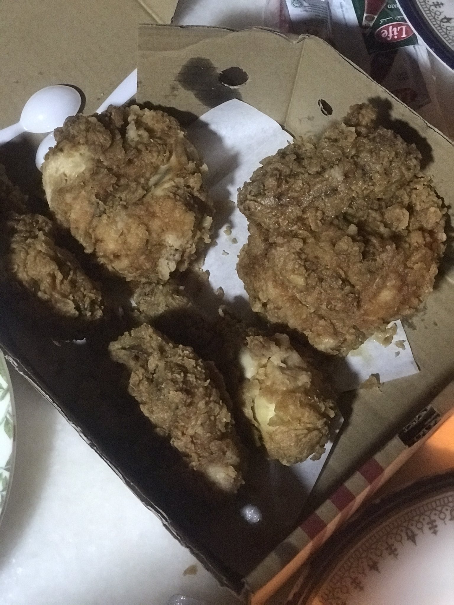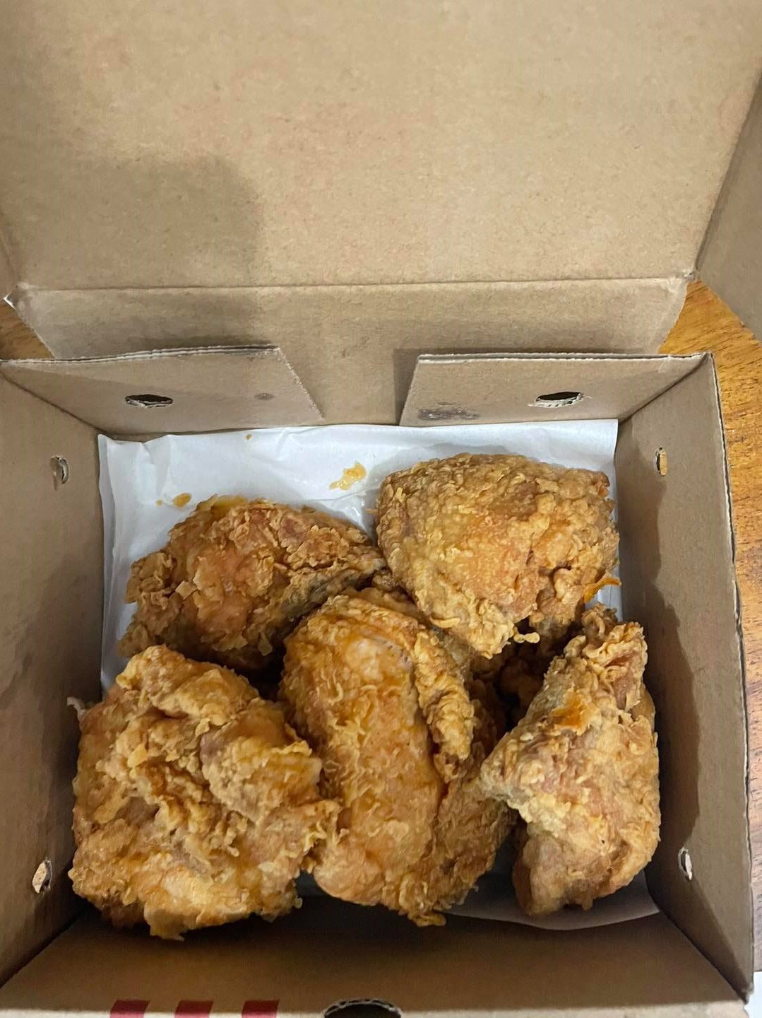 ▼ 结果他下单以后,收到的炸鸡一整盒都是大大块的!