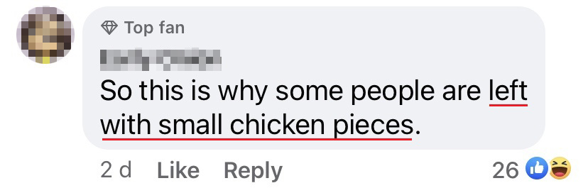 ▼ 但这样的行为还是不建议做!「这么一来,有些人就只能吃到小小块的炸鸡了。」