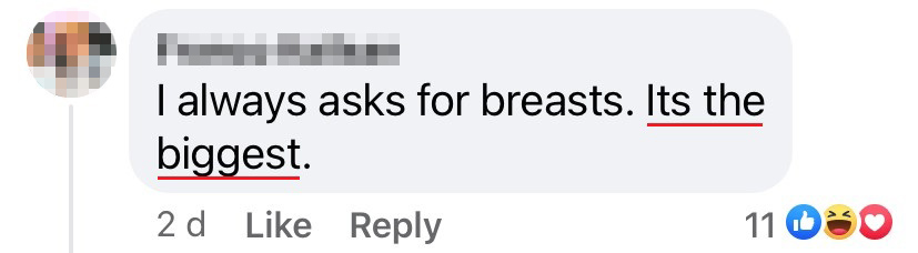 ▼ 网友表示他通常都会点鸡胸肉,因为鸡胸肉最大块。