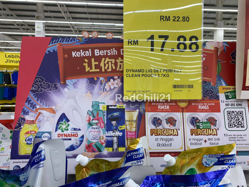 但除了便宜年货,民众们更喜欢的就是年货的免费赠品!比如这次P&G 推出的免费赠品活动,购满特定数额就能免费得到一个8寸大的吉祥喜庆餐盘和RM5 Grab 礼券!