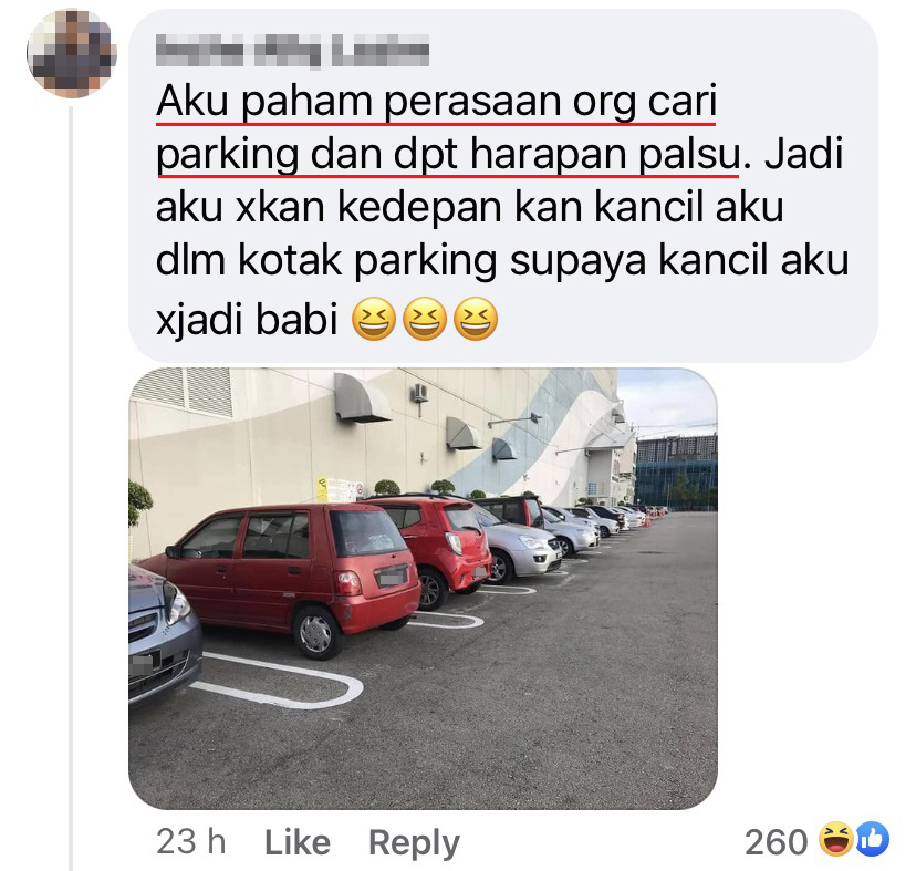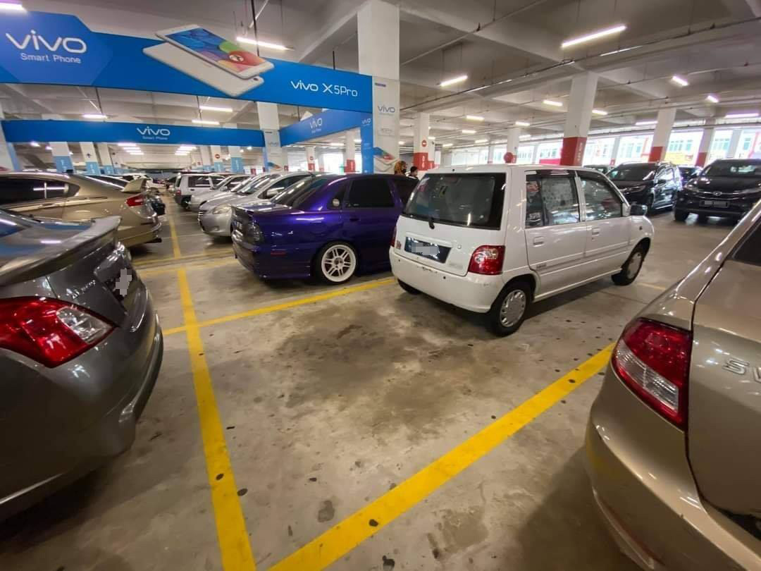 ▼ 为了不让其他司机在找停车位的时候产生误会和假希望,该白色 Kancil 的司机刻意将车子往前停,让 Kancil 的车头和其它车子一样位置。即便后面留着一大片空格子,他依然选择这么做,就为了体谅辛苦找停车位的其他驾驶者。