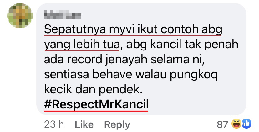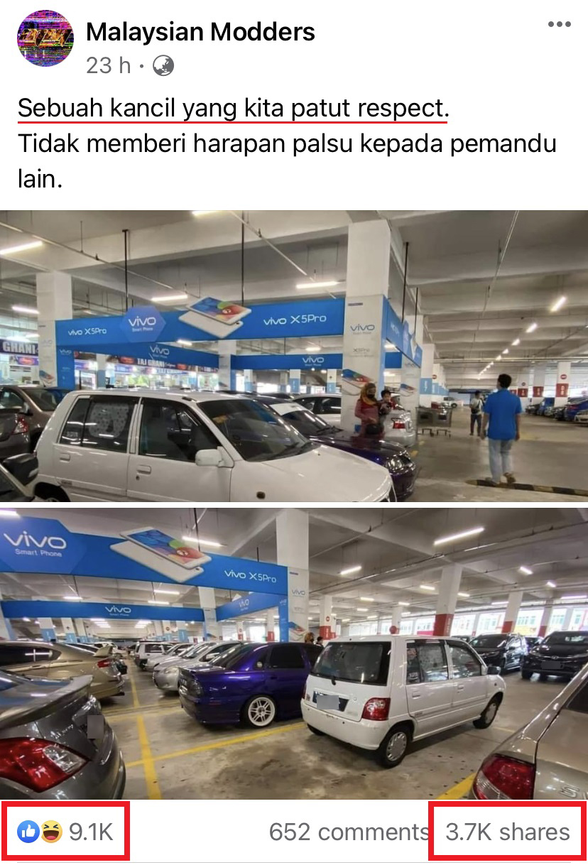 该帖子的内文写道:「值得我们尊重的一辆 Kancil。没有带给其他司机任何的假希望。」