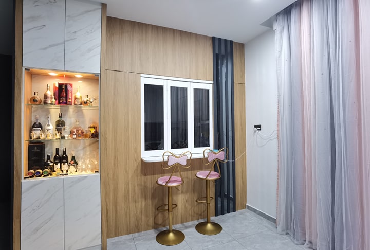 我家没有很华丽、很奢侈,只是以简单,容易打扫来规划。从楼下一间房间扩建三间,还有厨房扩充花费。