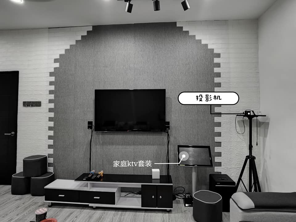 ▼ 别看喇叭小小,音量特别有力量。点唱机是随着网络自动更新,内存我买3TB。投影机就不介绍了,装修的时候跌下来坏了。整间房间都是自己diy,在别人眼里好像失水准,但是在我眼里我们的满足感没人可以了解。
