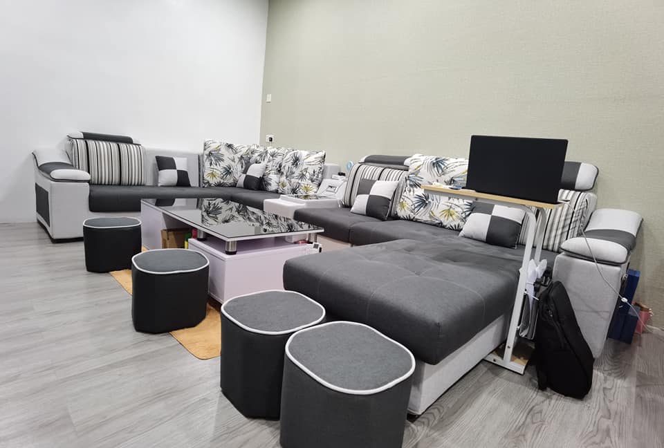 ▼ 这间房间我是想要百变套房,普通日子就是我们家的家庭KTV room,有人客来的话,还可以组装成一套双人床,躺着还蛮舒服的。我就是看中这家, 什么地方坏都可以另外购买,不用担心坏了一边要丢整套。坐满十个人都不是问题。