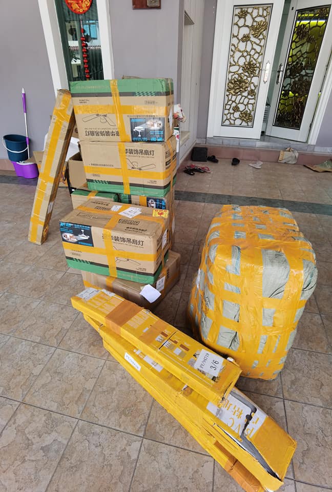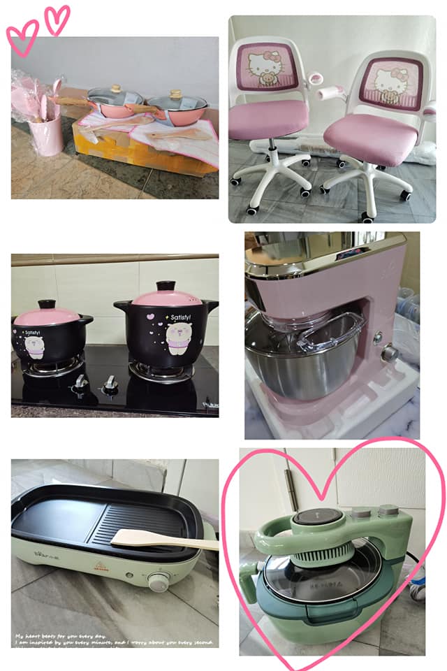 从淘宝购买的东西包括运费总数花费RM27K,当中包括蒸炉、烤炉、餐桌、沙发、灯饰、风扇、空调、智能开关、插座、小家电、窗帘,还有一些罐子、水槽、按摩椅、洗衣盆、洗手盆等等。