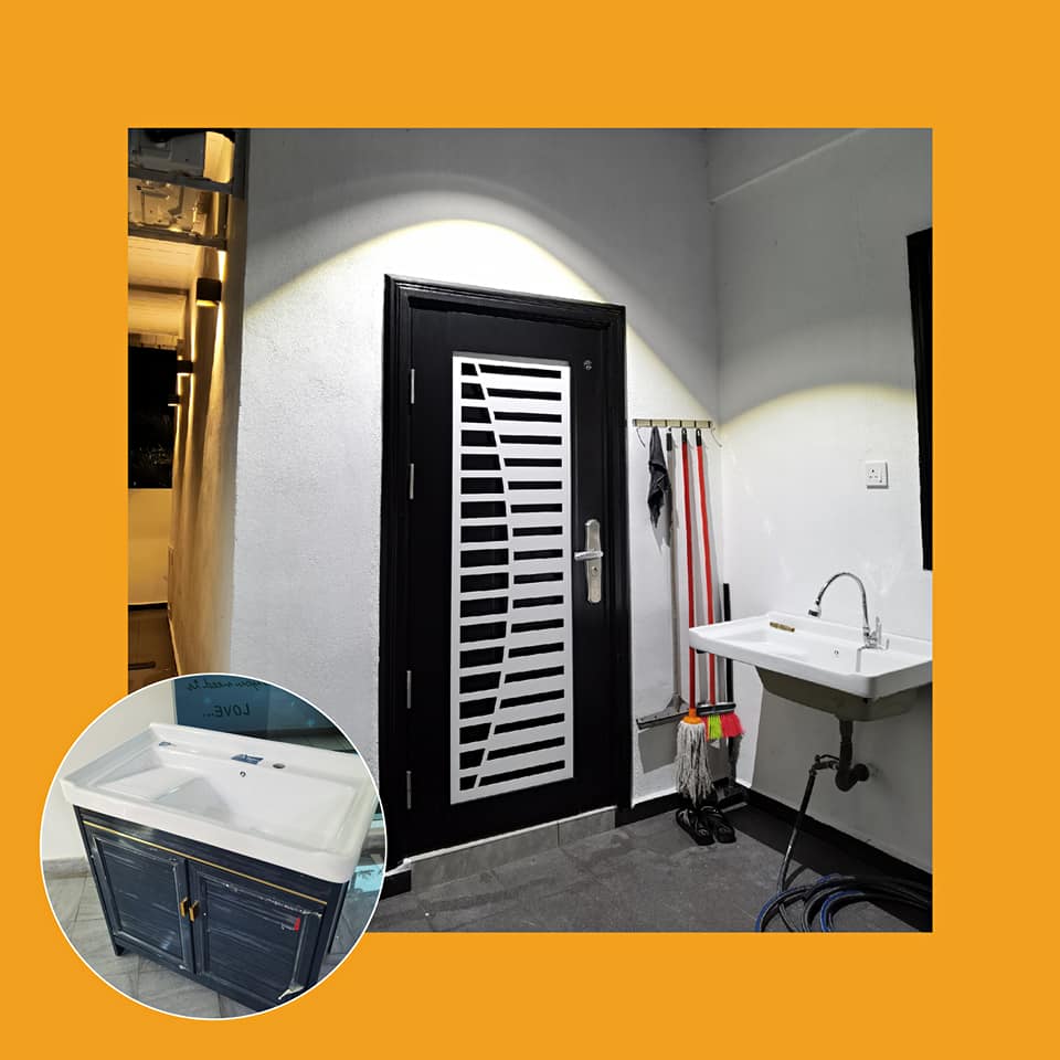 原本跟柜子一起按起来很漂亮的,因为我有做墙角线,变成靠不了墙,要锁有点远。又担心里面会藏着蛇虫鼠蚁,跟水喉老板商量,他说这样锁也很稳的。